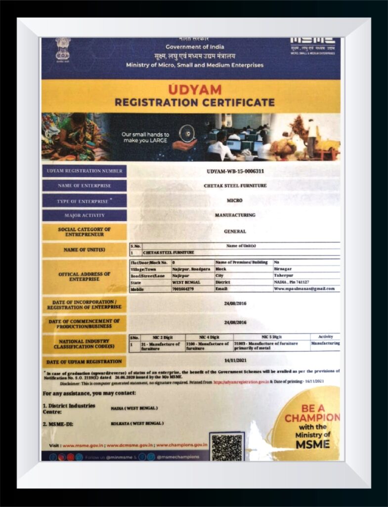 - ✅ Chetak Steel: Excellent customer support, warranty assurance, and quick service response.